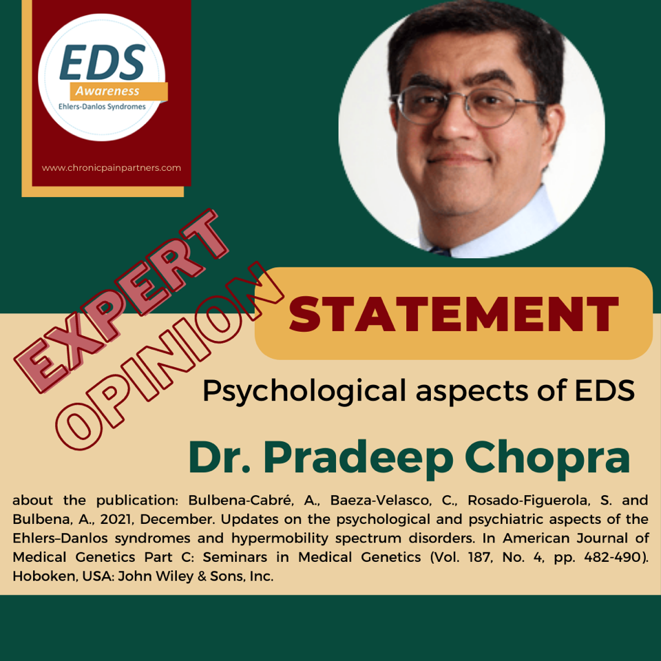 EDS expert and pain specialist Dr. Pradeep Chopra contacted Chronic Pain Partners to speak about a recently published review on the psychological and psychiatric aspects of the Ehlers-Danlos syndromes. Dr. Chopra has been treating complex pain patients, focusing on people with Ehlers-Danlos syndrome, for decades and is a passionate advocate for patients around the world.